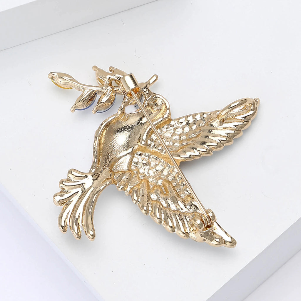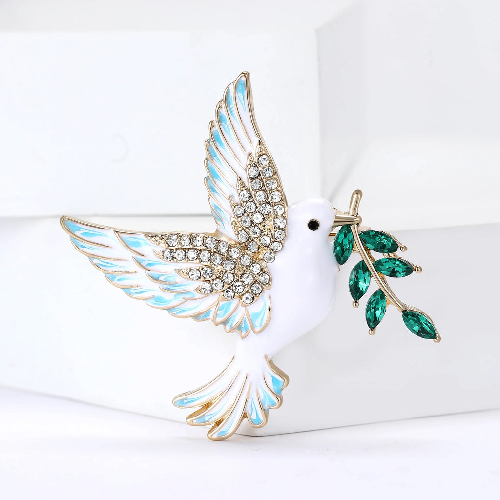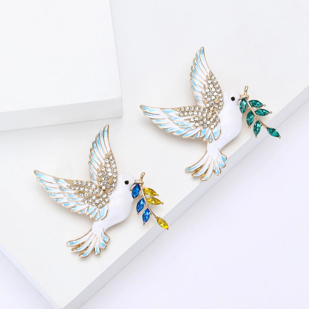 Trendy Rhinestone Bird Brooches for Women Enamel Wheat Pins Unique Design Ukrainian Peace Dove New Year Gifts Accessories