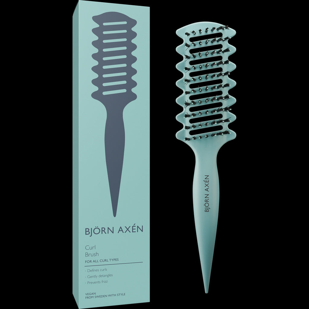 Björn Axén Curl Brush is a curling brush that shapes, defines and emphasizes natural curls with the help of soft bristles and specially designed edges. It is perfect for those looking for a gentle curl brush that detangles the hair without pulling, while reducing frizz and helping the curls maintain their natural shape and elasticity. The brush gives an even and shiny result and works for all hair types, especially wavy, curly and curly hair.