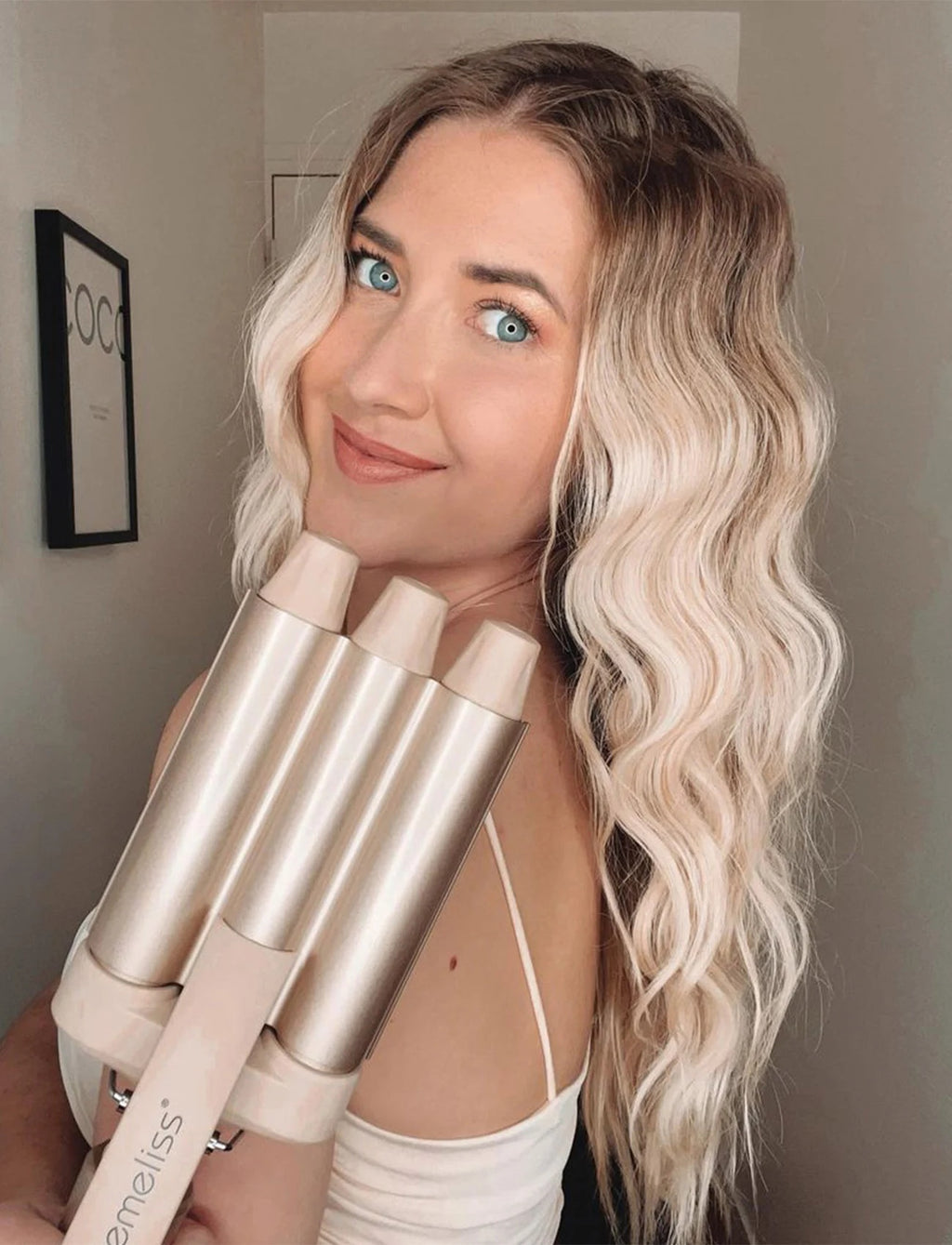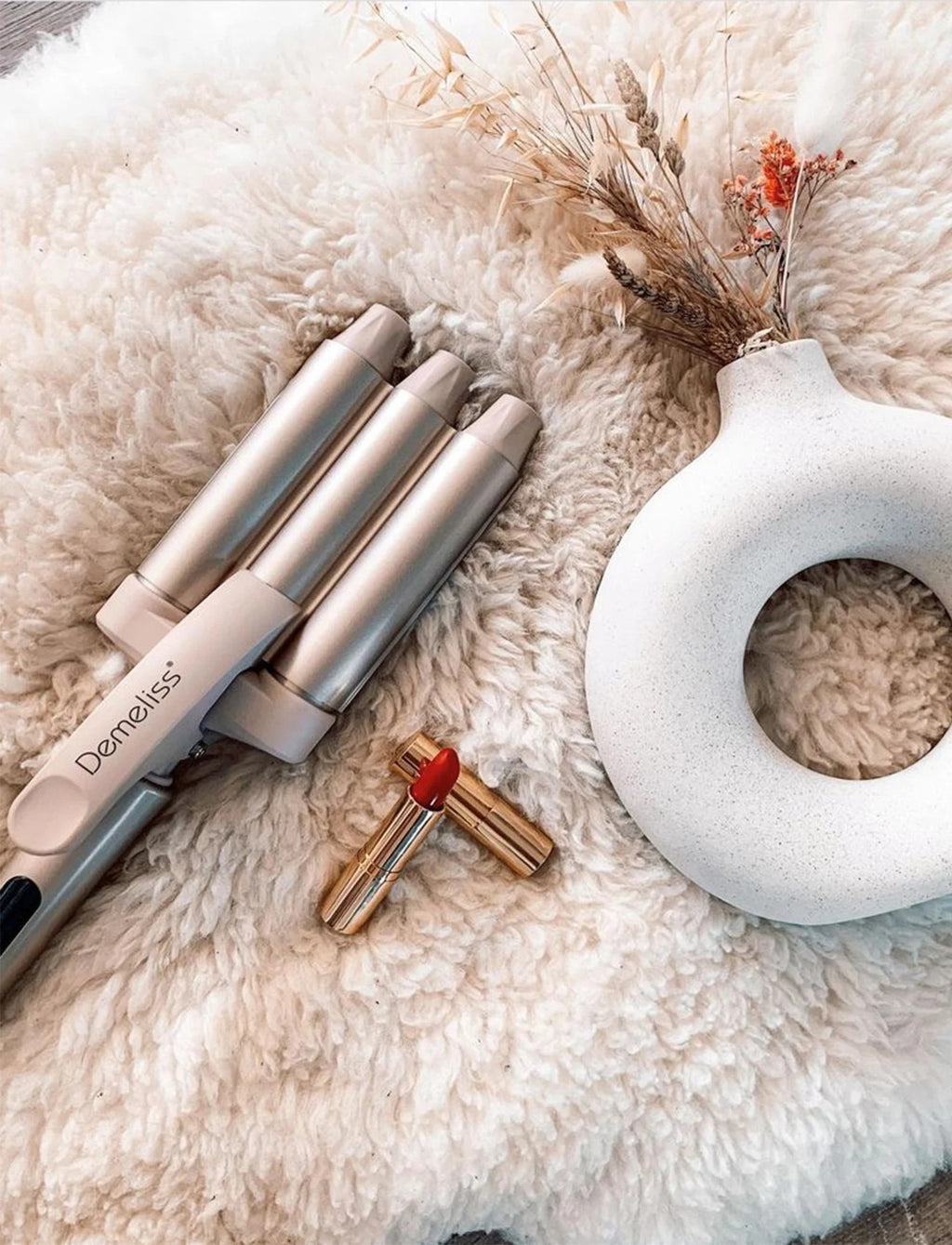 Demeliss Waves Nordics is a professional curling tong that makes it easy to create deep, defined waves with a salon feel at home. It is developed to shape the hair quickly and evenly, you just place a section of hair between the ceramic cylinders and work your way down for an immediately visible result.