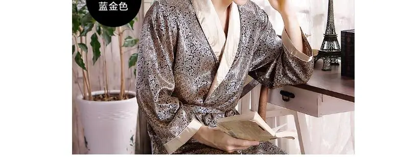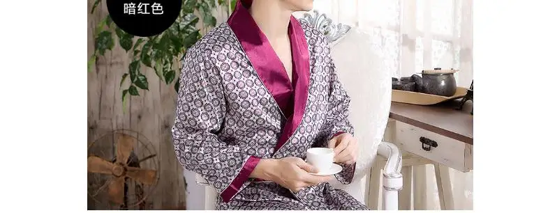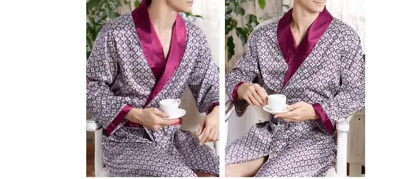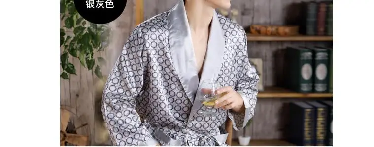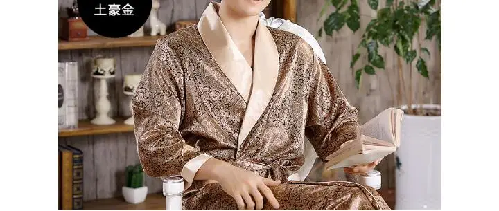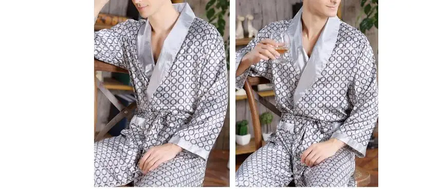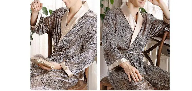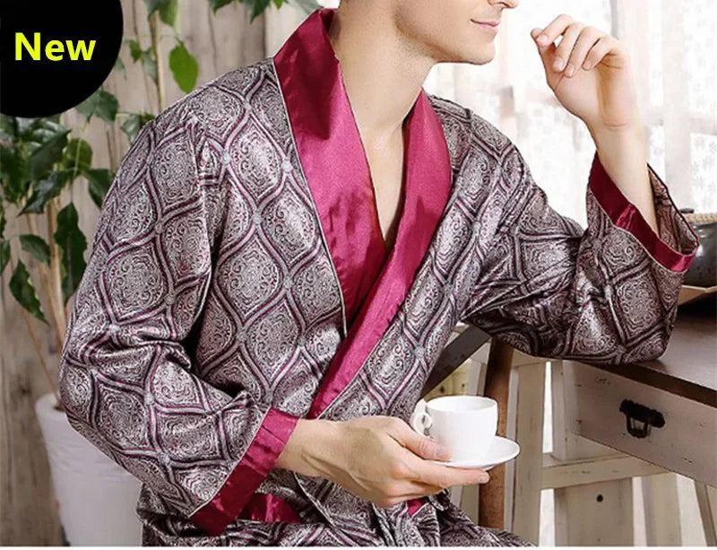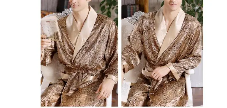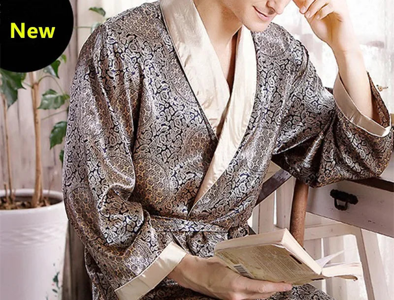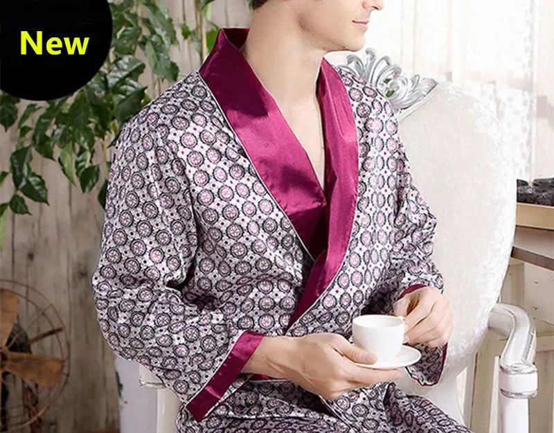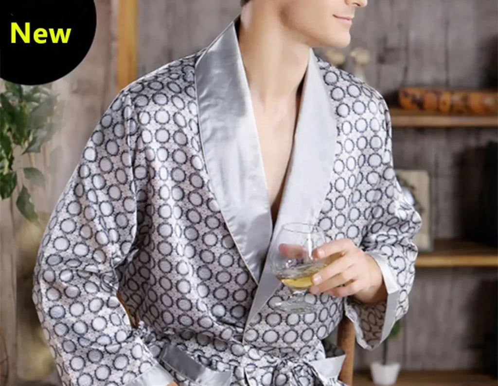 New 2025 Men's Luxury Pajamas Robes Silk Kimono Robe Long Sleeve Bathrobe Satin Nightgown Male Summer Home Clothing Oversize 5XL