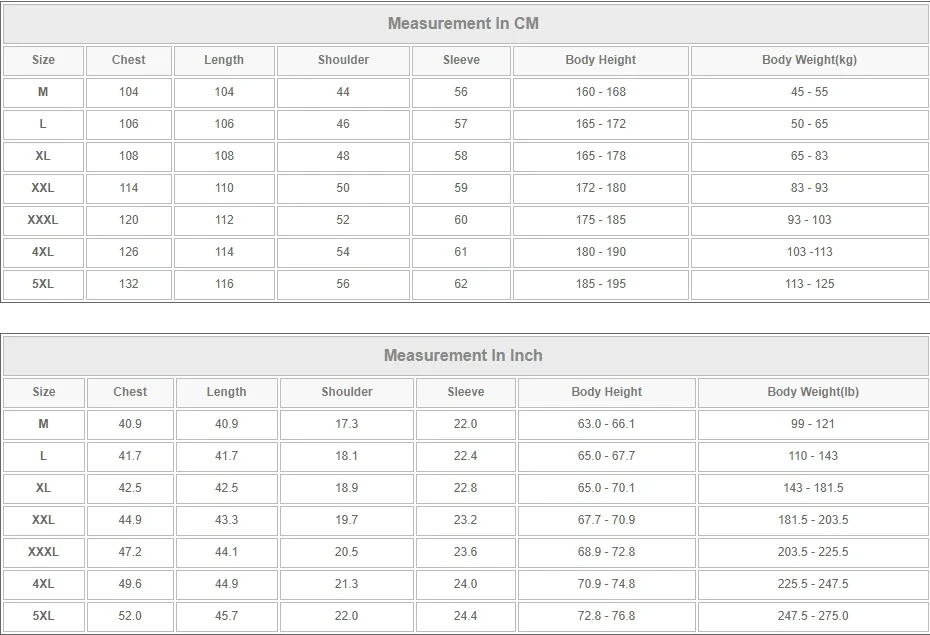 • Size : M L XL 2XL 3XL 4XL 5XL