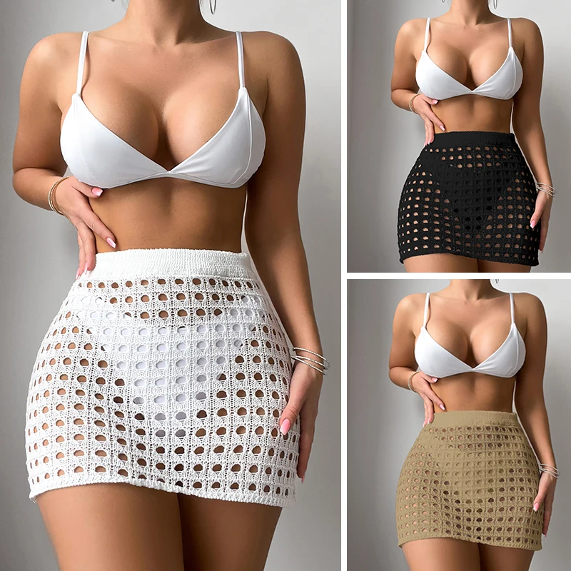 New Sexy Crochet Tassel Beach Skirt Cotton Swimsuit Fused Skirt Casual Beach Hollow Out See Through Slim Mini Skirts