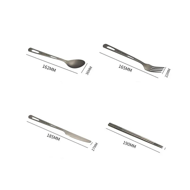 Pure Titanium Tableware Set Outdoor Household Frosted Knife and Fork Spoon Chopsticks Travel Camping Portable Knife and Fork Set
