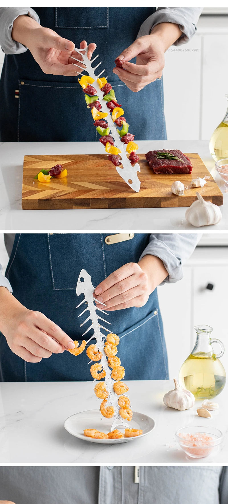 BBQ Grill Skewers are helpful to grill multiple kabobs, beef, meat, shrimps, chicken, vegetable, and so on at the same time, providing you with great convenience for kabobs, beef, meat, shrimps, chicken, vegetable, and more.