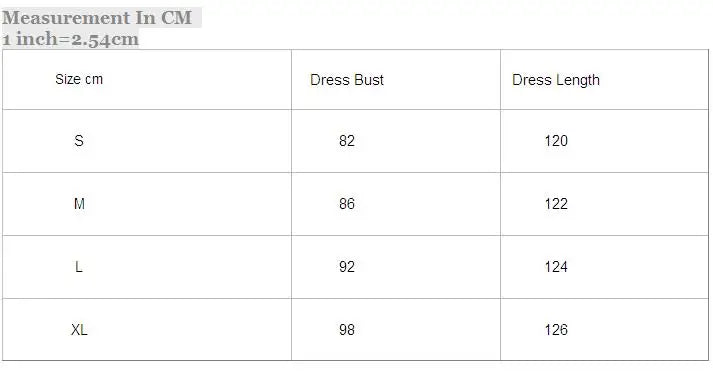 Size cm | Dress Bust | Dress Length |
