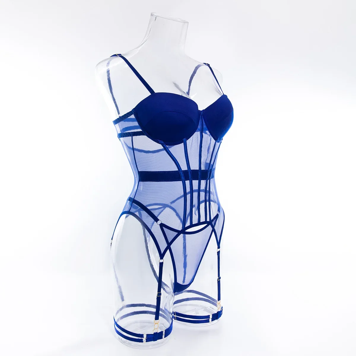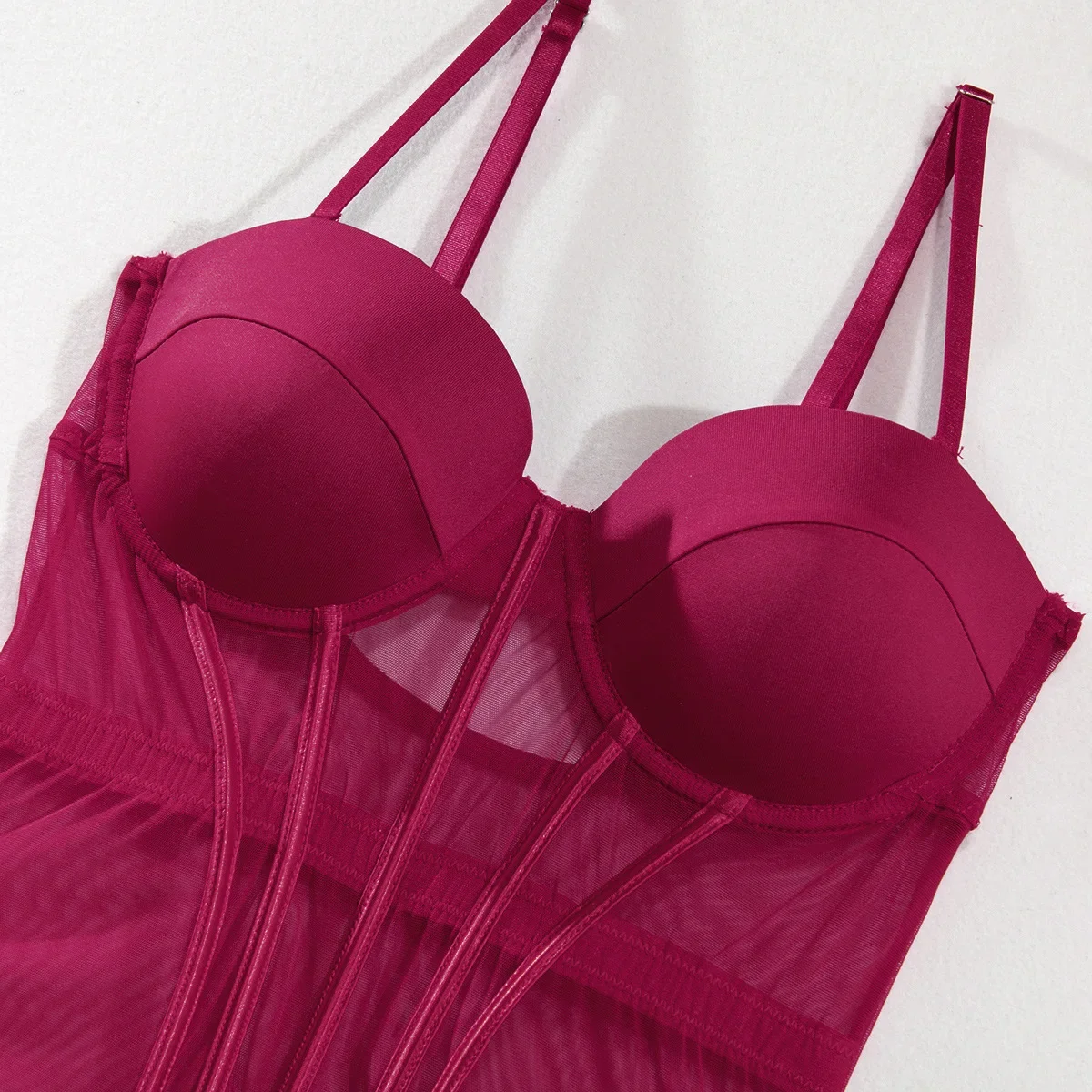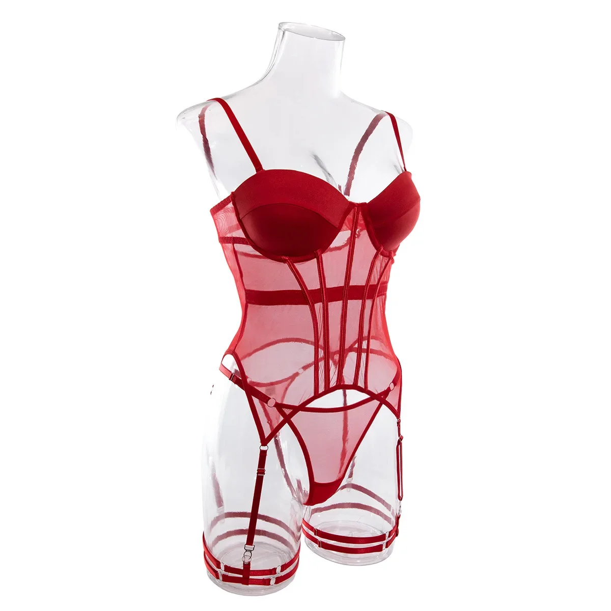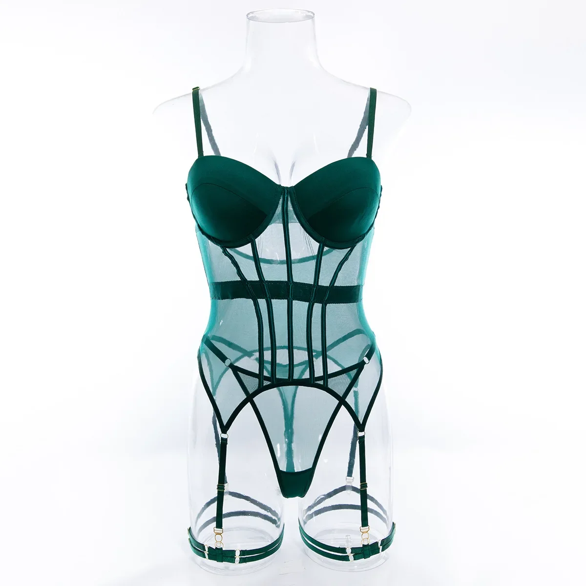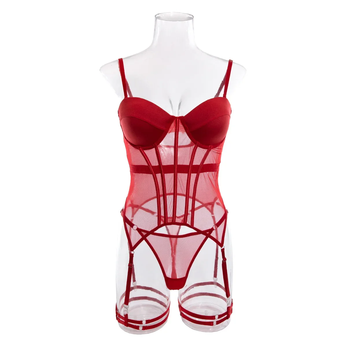 Sexy Transparent Mesh Splicing Women's Cotton Gathered Body Suit Bra Underpant Nylon Fabric Thin Style Summer Fashion Crossbody