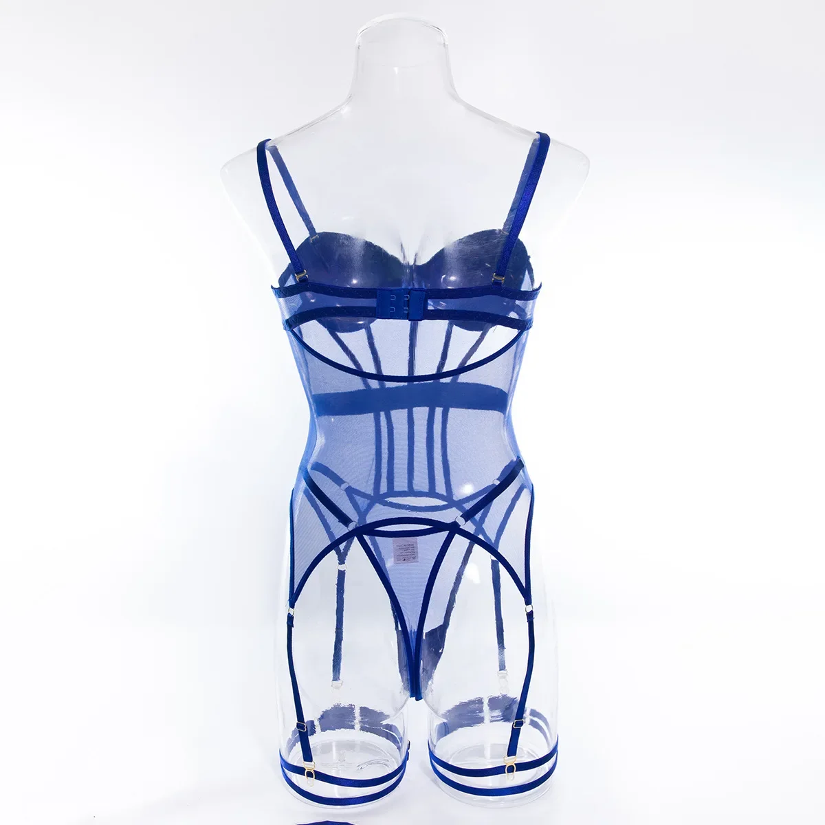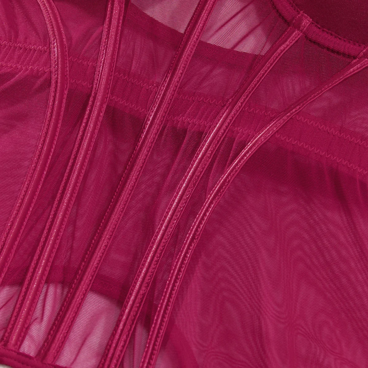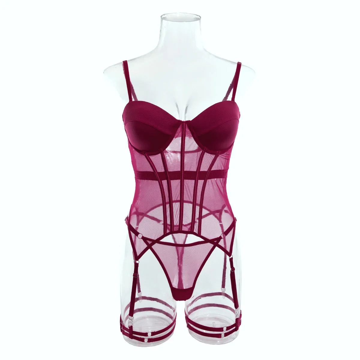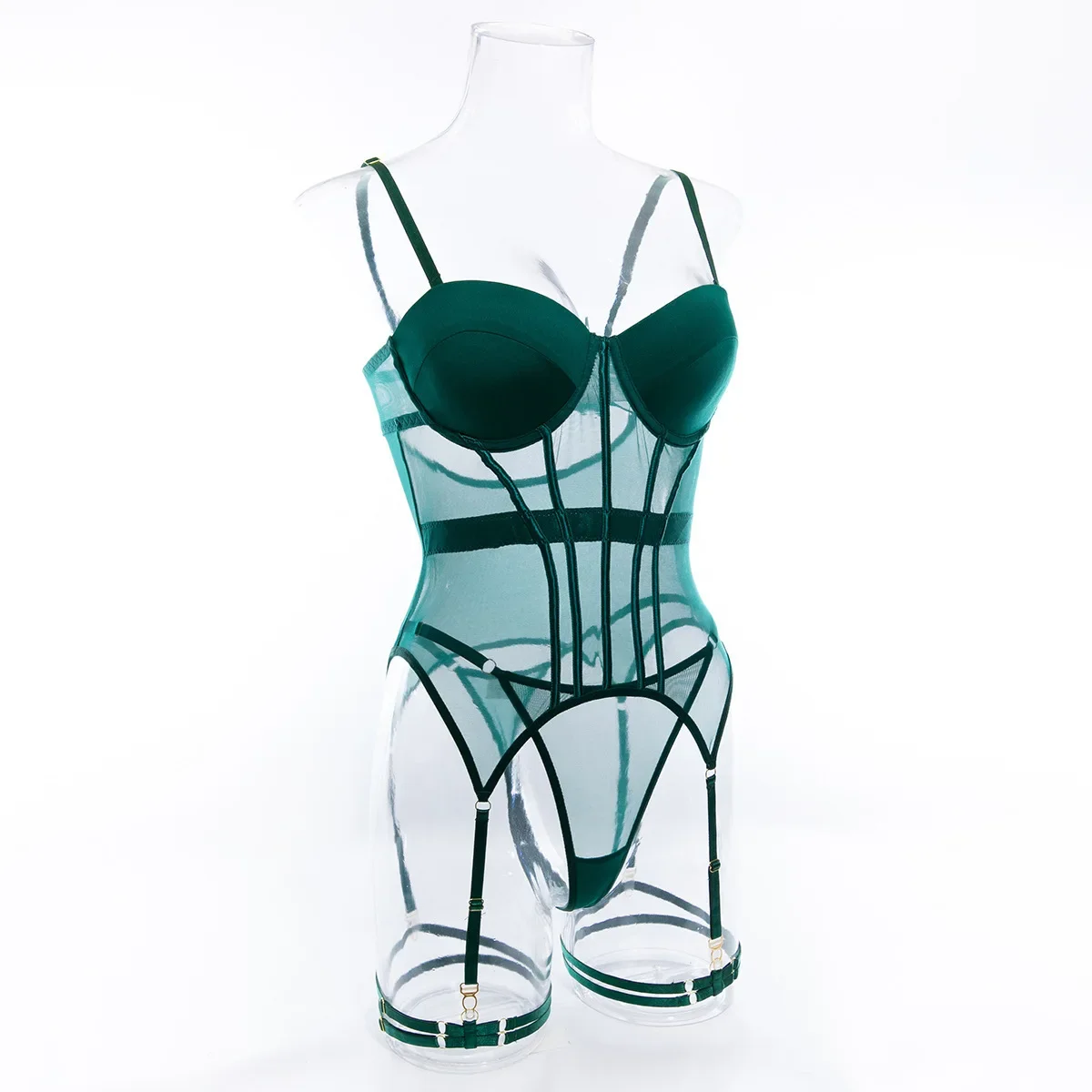 Sexy Transparent Mesh Splicing Women's Cotton Gathered Body Suit Bra Underpant Nylon Fabric Thin Style Summer Fashion Crossbody