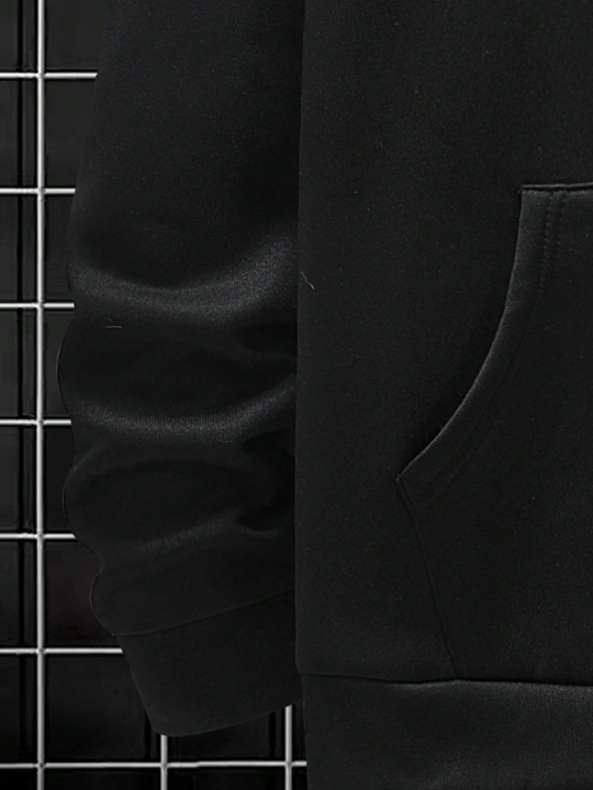 Color: Black Style: Casual Pattern Type: Plain Neckline: Hooded Sleeve Length: Long Sleeve Sleeve Type: Drop Shoulder Details: Drawstring Fit Type: Regular Fit Length: Long Material: Fabric Composition: 100% Polyester Care Instructions: Machine wash or professional dry clean Sheer: No Fabric: Slight Stretch Temperature: Spring/Fall 18-25℃/63-77℉