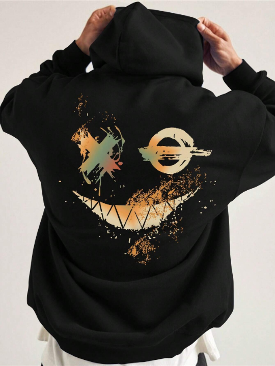 Color: Black Style: Casual Type: Pullovers Pattern Type: Cartoon Details: Drawstring, Pocket Neckline: Hooded Sleeve Length: Long Sleeve Sleeve Type: Drop Shoulder Length: Regular Fit Type: Regular Fit Fabric: Slight Stretch Material: Fabric Composition: 100% Polyester Care Instructions: Machine wash or professional dry clean Temperature: Spring/Fall 18-25℃/63-77℉ Sheer: No
