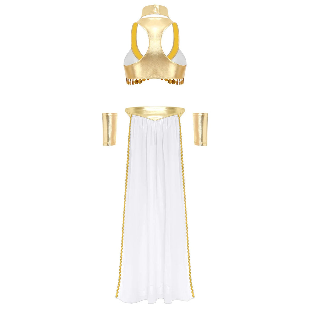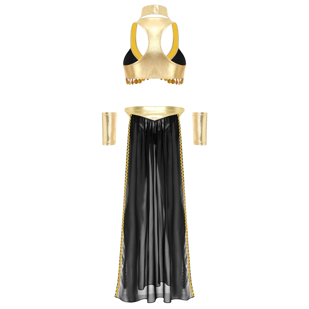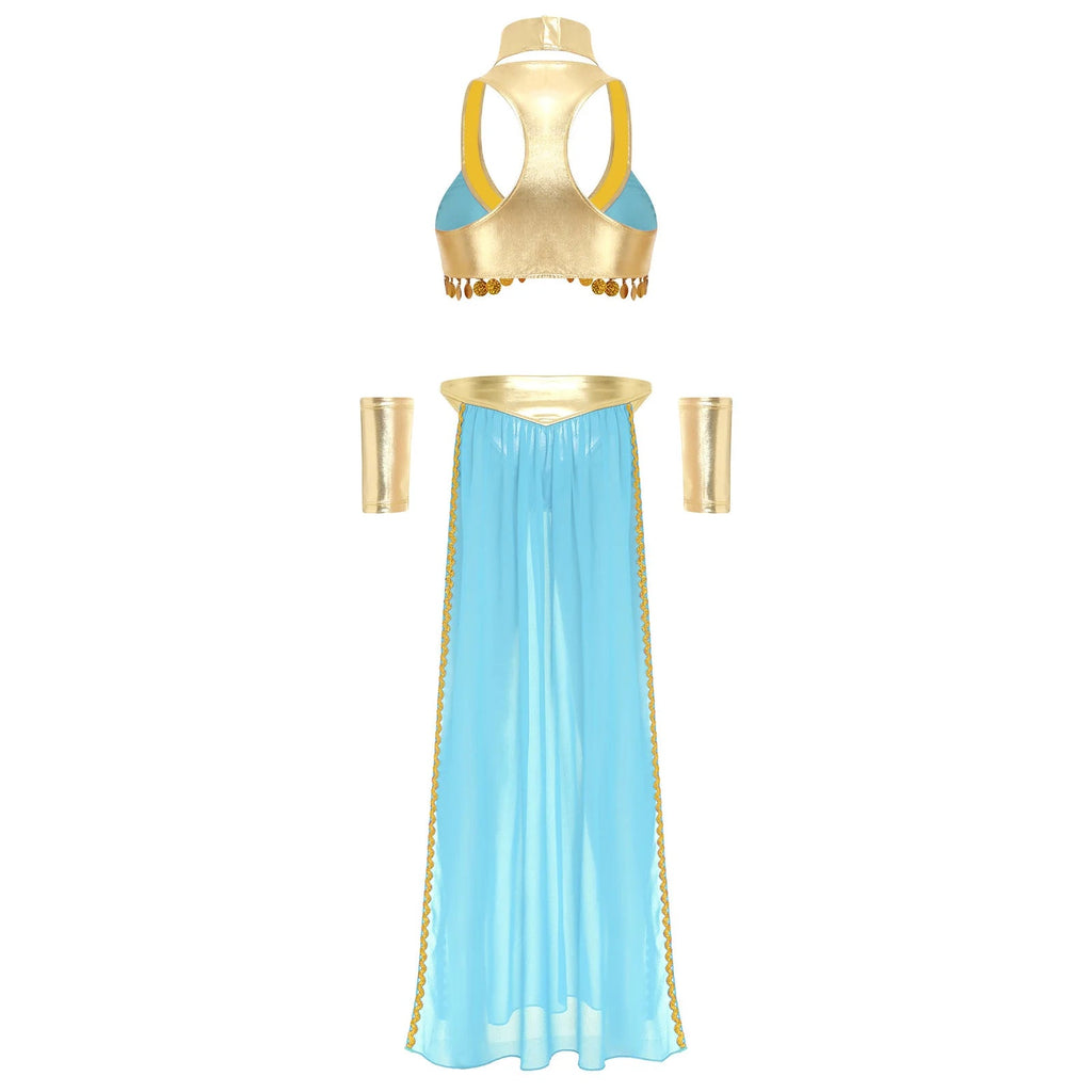 The crop top with removable collar and sleeves adds a touch of elegance and sophistication, enhancing the overall regal appearance.
