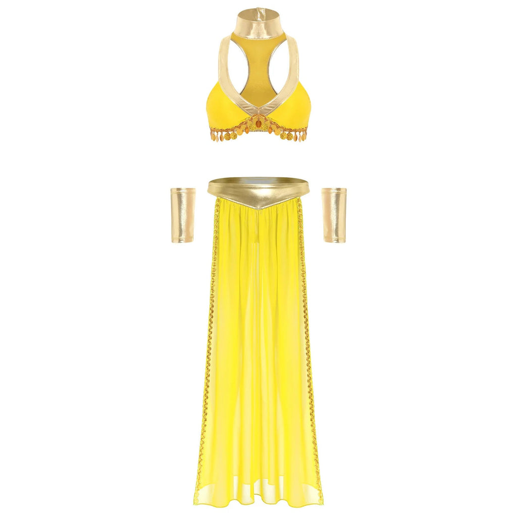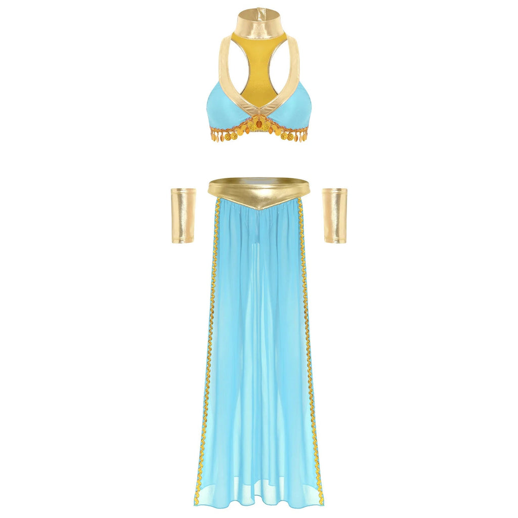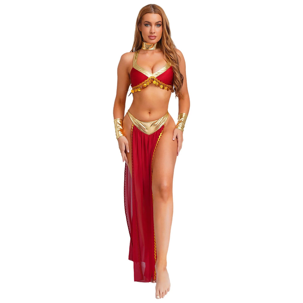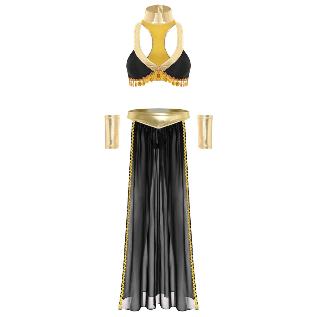The crop top with removable collar and sleeves adds a touch of elegance and sophistication, enhancing the overall regal appearance.