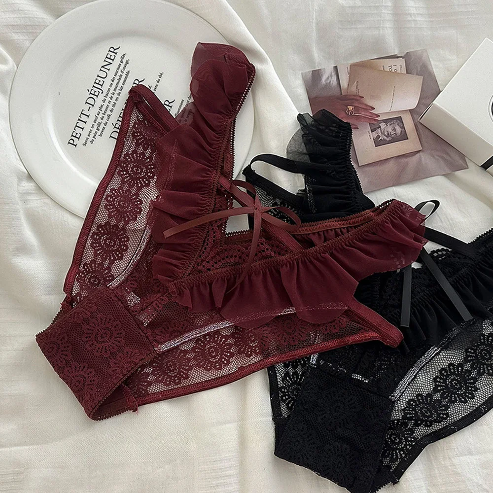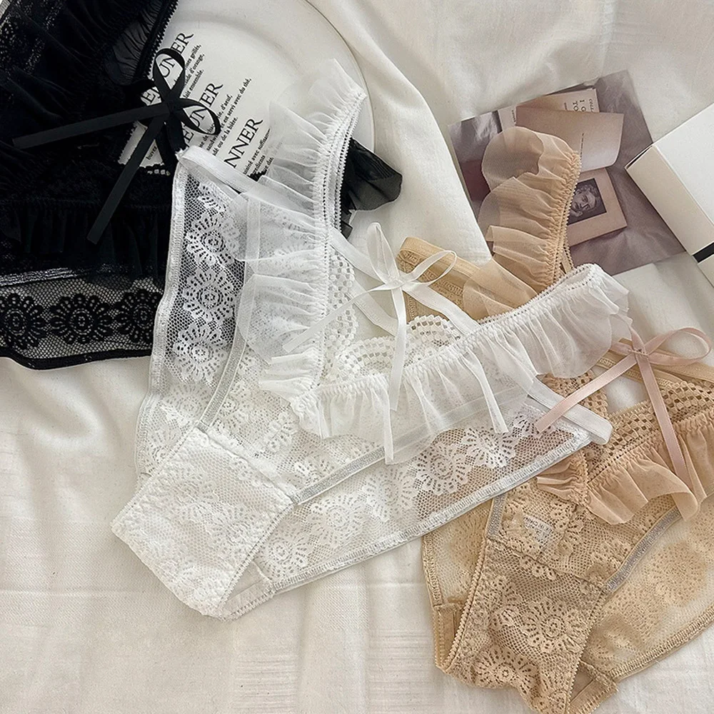 Women's Sexy Lace Underwear Pure Desire Ruffle Edge Traceless Triangle Panties Lightweight Comfortable Women's Innerwear