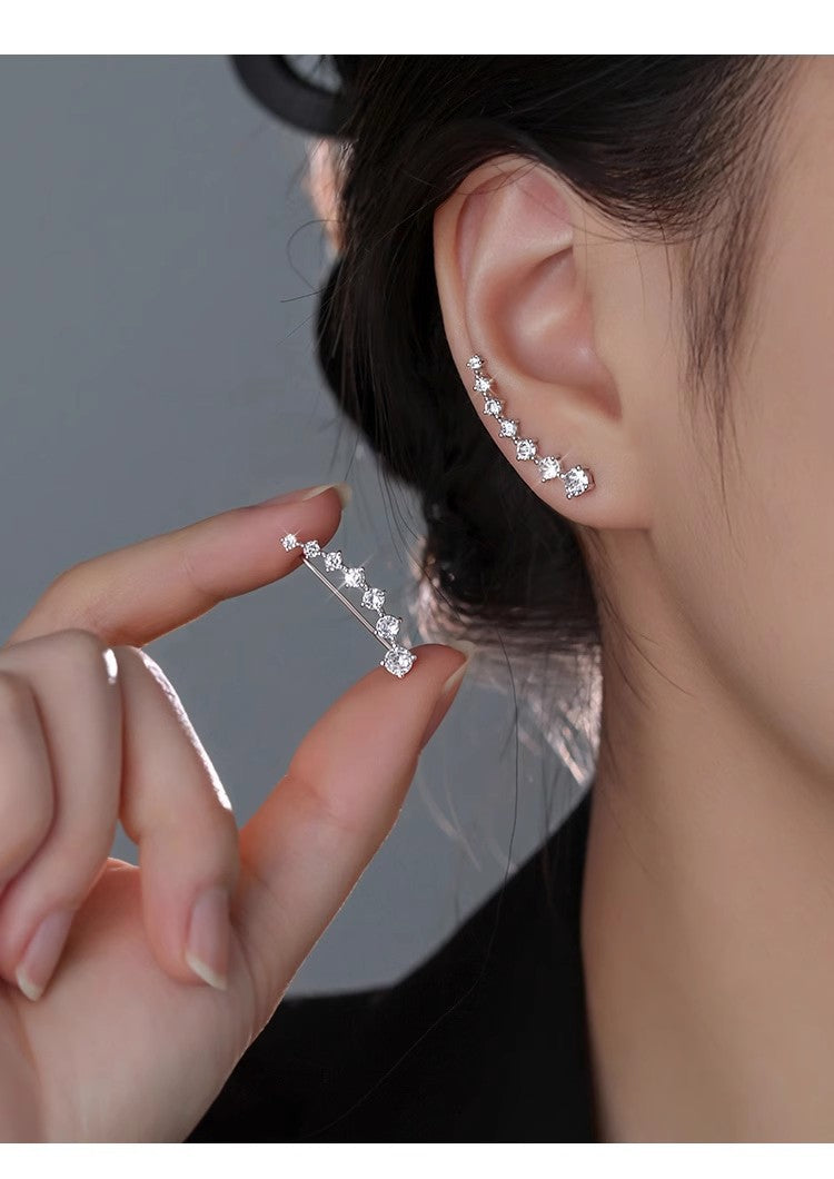 [Trendy, Luxe] Aesthetic upgrade. 👑 These earrings are the perfect way to add a touch of luxury to your everyday look. They're giving off serious "it girl" vibes, and everyone will be asking where you got them. Seriously, they are a must-have. Grab this luxurious, modern Zircon Sparkle Row Earrings aesthetic upgrade today!