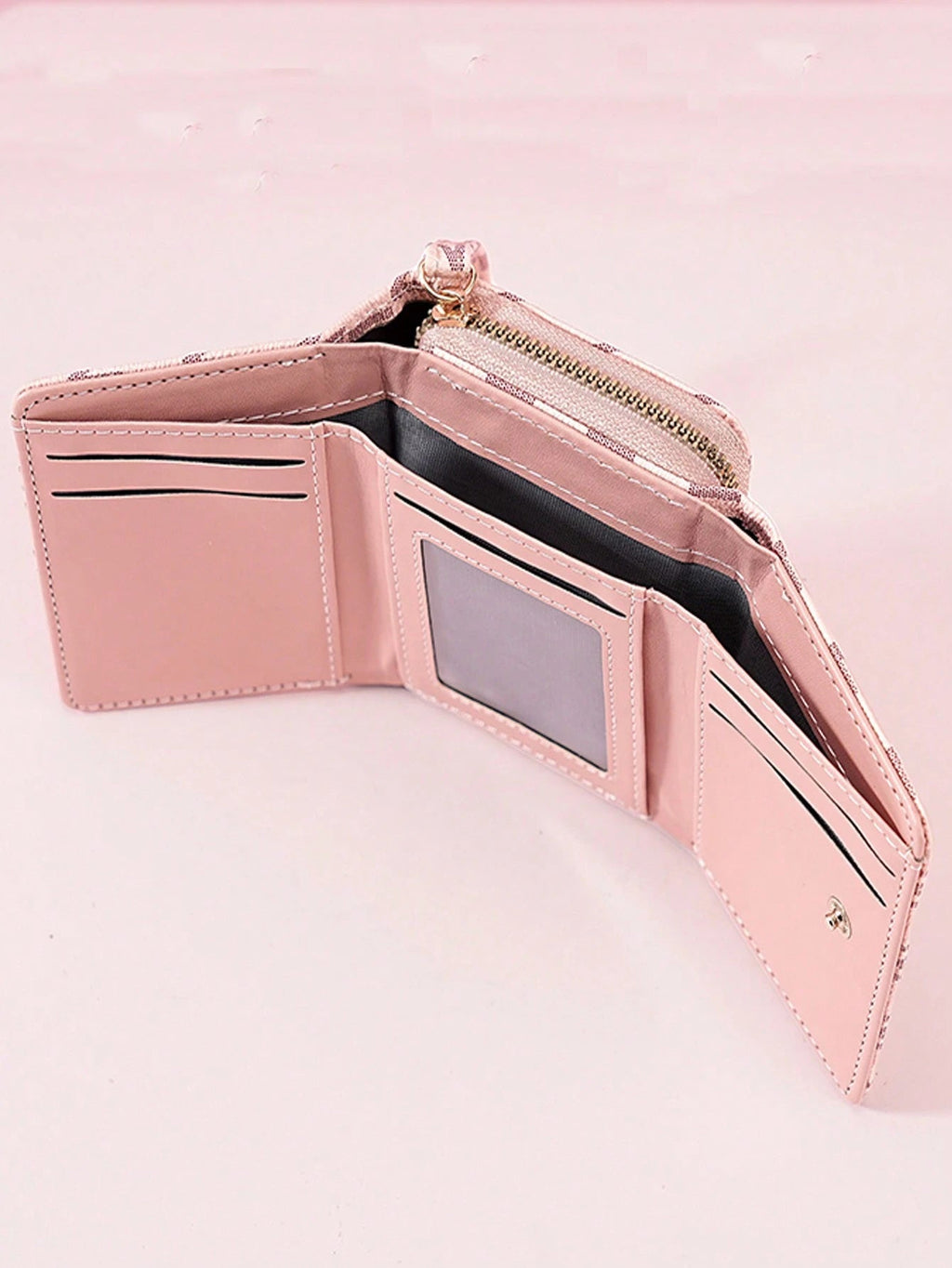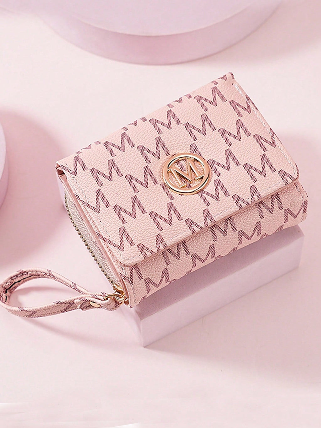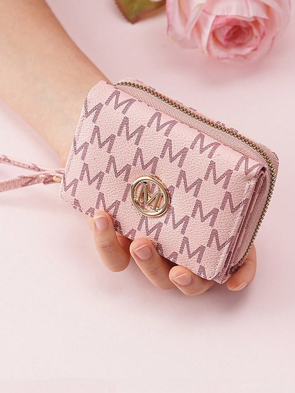 Type : Small WalletDetails : LetterPattern Type : All Over PrintStyle : CasualFeatures : FoldableClosure Type : ZipperColor : PinkStrap Type : ChainMaterial : PU LeatherGender : Women