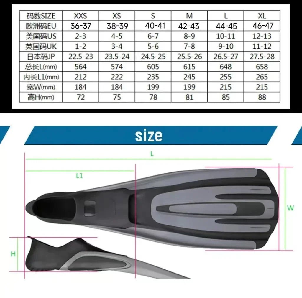 ★Comfortable full foot pocket, fins can be worn barefoot or using neoprene socks.