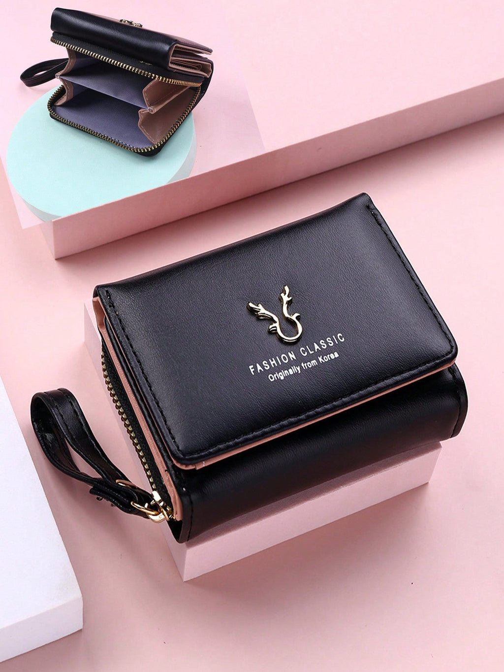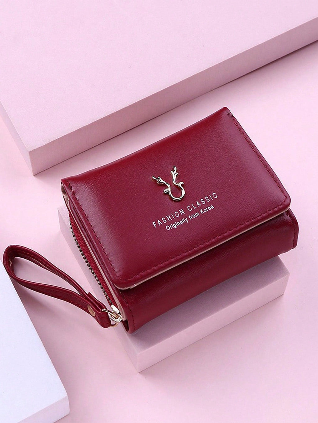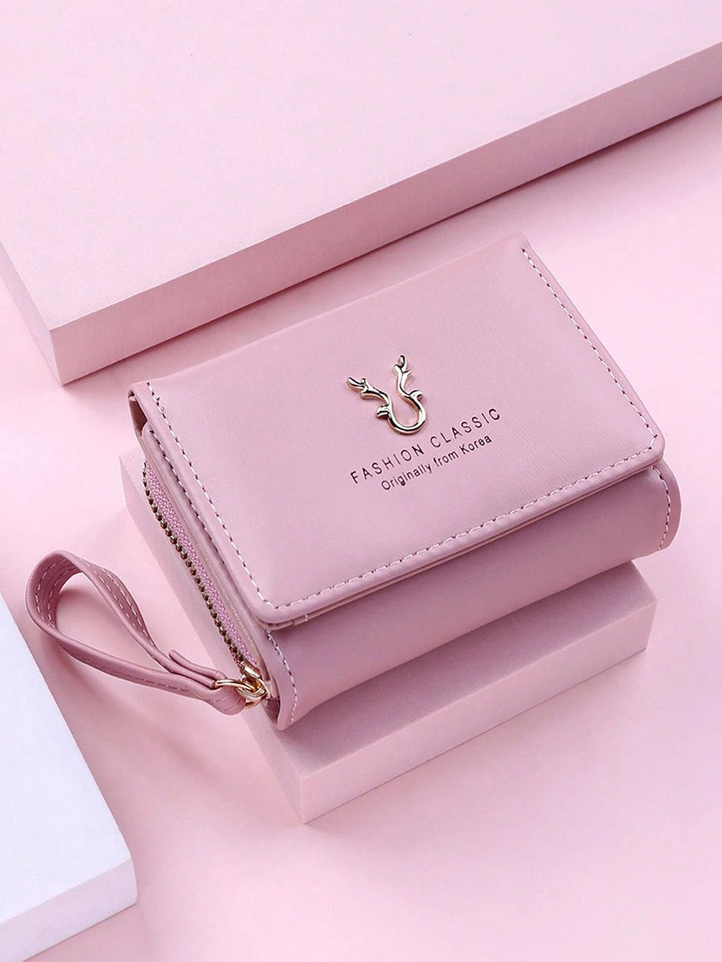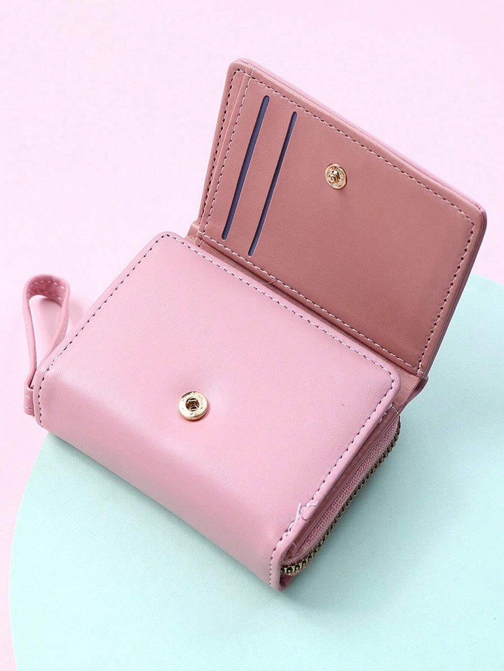 Type : Small WalletDetails : LetterPattern Type : Plaid, Textured PatternStyle : CasualFeatures : Multiple Pockets, FoldableClosure Type : ZipperColor : PinkStrap Type : ChainMaterial : PU LeatherGender : Women