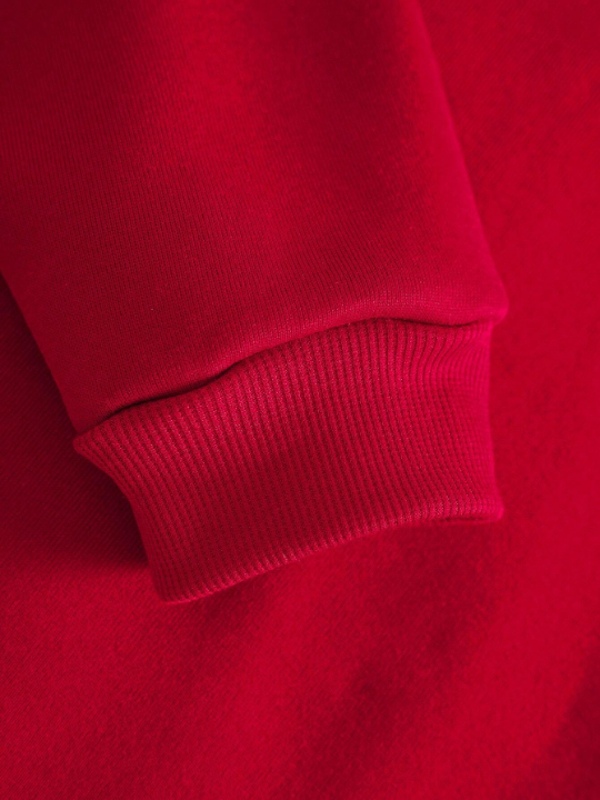 Color: Red Style: Casual Type: Pullovers Pattern Type: Plain Details: Drawstring, Pocket Neckline: Hooded Sleeve Length: Long Sleeve Sleeve Type: Regular Sleeve Length: Regular Fit Type: Loose Fabric: Slight Stretch Material: Fabric Composition: 100% Polyester Care Instructions: Machine wash or professional dry clean Temperature: Late Fall 10-17℃/50-63℉ Lined For Added Warmth: Yes Sheer: No