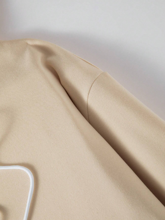 Color: Khaki Style: Casual Pattern Type: Plain Neckline: Hooded Sleeve Length: Long Sleeve Sleeve Type: Drop Shoulder Details: Drawstring, Pocket Fit Type: Regular Fit Length: Long Material: Fabric Composition: 100% Polyester Care Instructions: Machine wash or professional dry clean Sheer: No Fabric: Slight Stretch Pockets: Yes Temperature: Spring/Fall 18-25℃/63-77℉