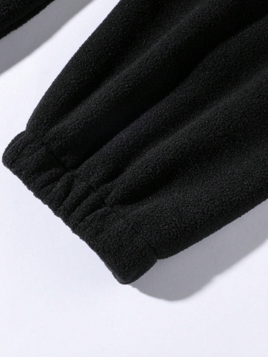 Color: Black Style: Casual Type: Half Placket Pattern Type: Graphic Neckline: Funnel Neck Sleeve Length: Long Sleeve Sleeve Type: Drop Shoulder Length: Regular Fit Type: Loose Fabric: Slight Stretch Material: Flannelette Composition: 100% Polyester Care Instructions: Machine wash or professional dry clean Temperature: Winter <10℃/50℉ Sheer: No