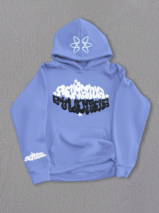 Color: Baby Blue Style: Casual Type: Pullovers Pattern Type: Letter Details: Drawstring, Pocket Neckline: Hooded Sleeve Length: Wrist-Length Sleeve Sleeve Type: Regular Sleeve Length: Regular Fit Type: Oversized Fabric: Slight Stretch Material: Knitted Fabric Composition: 100% Polyester Care Instructions: Machine wash or professional dry clean Temperature: Late Fall 10-17℃/50-63℉ Sheer: No