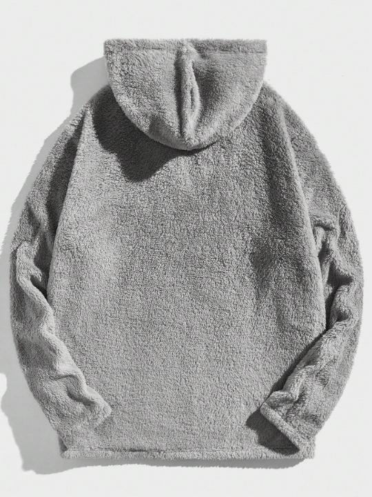 Color: Grey Style: Casual Type: Half Placket Pattern Type: Letter Details: Embroidery, Zipper Neckline: Hooded Sleeve Length: Long Sleeve Sleeve Type: Drop Shoulder Length: Regular Fit Type: Regular Fit Fabric: High Stretch Material: Flannelette Composition: 100% Polyester Care Instructions: Machine wash, do not dry clean Temperature: Late Fall 10-17℃/50-63℉ Sheer: No