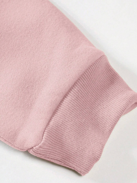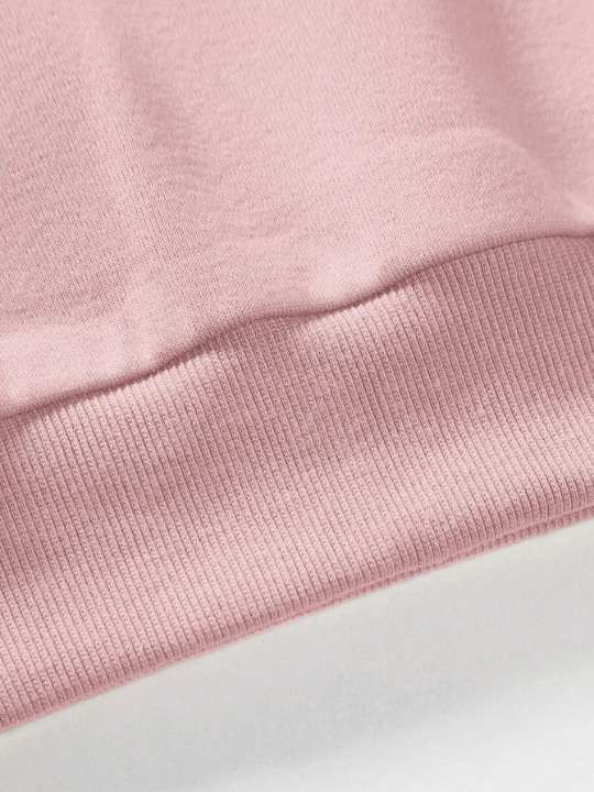 Color: Pink Style: Casual Type: Pullovers Pattern Type: Letter Details: Patched Neckline: Round Neck Sleeve Length: Long Sleeve Sleeve Type: Drop Shoulder Length: Regular Fit Type: Oversized Fabric: Non-Stretch Material: Fabric Composition: 100% Cotton Care Instructions: Hand wash,do not dry clean Sheer: No
