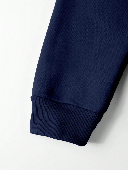 Color: Royal Blue Style: Casual Type: Pullovers Pattern Type: Letter Details: Drawstring, Pocket Neckline: Hooded Sleeve Length: Long Sleeve Sleeve Type: Drop Shoulder Length: Regular Fit Type: Regular Fit Fabric: Slight Stretch Material: Fabric Composition: 100% Polyester Care Instructions: Machine wash or professional dry clean Temperature: Spring/Fall 18-25℃/63-77℉ Sheer: No